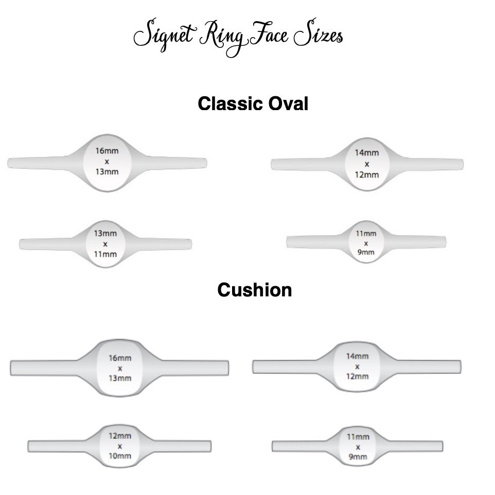 When printed at 100% our Signet Ring Face Shapes and Sizes pdf shows you actual size. You can even cut it out and place on your finger for a true sense of proportion.